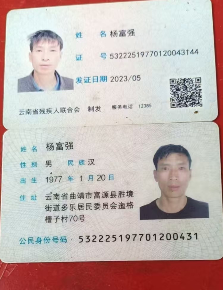 富源县胜境街道多乐社区迤格槽子残疾人杨富强,于今年5月13日为0.5亩土地被占而前去找社区领导维权,没料到本身左腿残疾的单身汉却被村干部将右腿腓骨打断。时至7月21日,杨富强因无钱支付医疗费还无法住院治疗。被伤害事件亦没有获得相应处理。